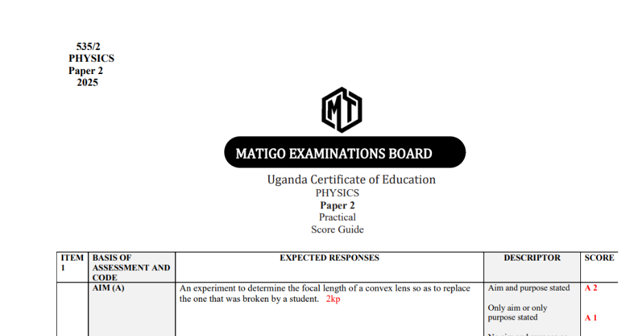 MATIGO MOCKS UCE PHYSICS 2 SCORE GUIDE 2025