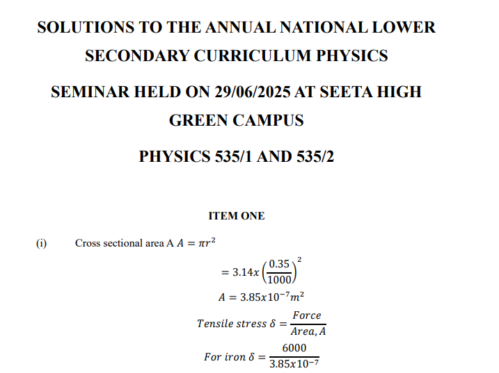 SOLUTIONS OF UCE PHYSICS SEMINAR HELD AT SEETA HIGH GREEN CAMPUS