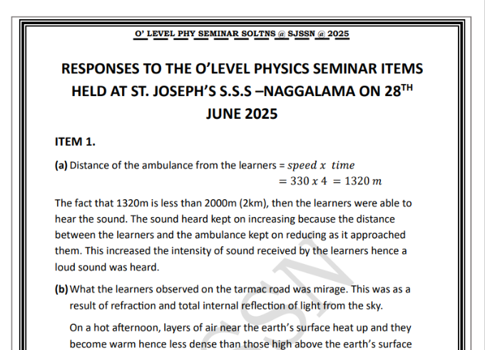 St. Joseph’s S.S Naggalama O level Physics Seminar 2025 Guide