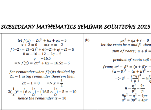 SUBSIDIARY MATHEMATICS SEMINAR SOLUTIONS 2025