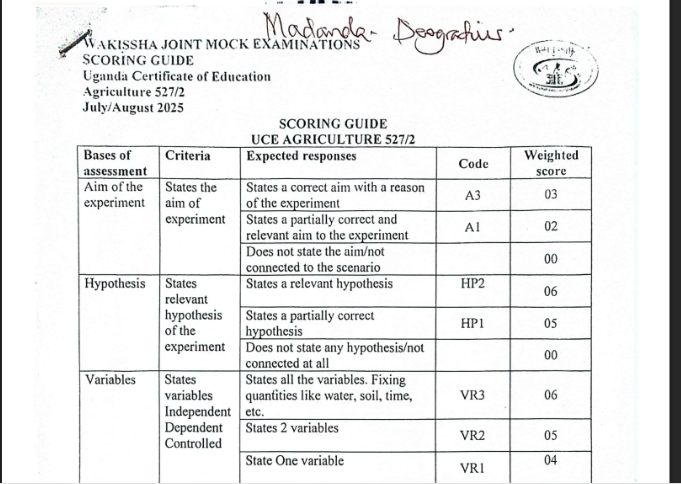 WAKISSHA JOINT MOCK 2025 UCE AGRICULTURE 2 GUIDE